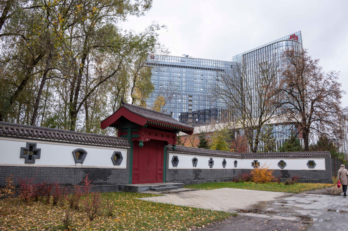 Выхожу из метро "Ботанический сад". Напротив, через дорогу, парк "Леоновская роща". Вот в нем-то и расположился уютно китайский парк, а рядом китайская гостиница и бизнес-центр (я еще туда пойду в столовую, обедать китайской кухней). Говорят, в этой гостинице останавливался сам Си Цзин Пин. Ну, да ладно. Я больше по паркам да по трапезным.
