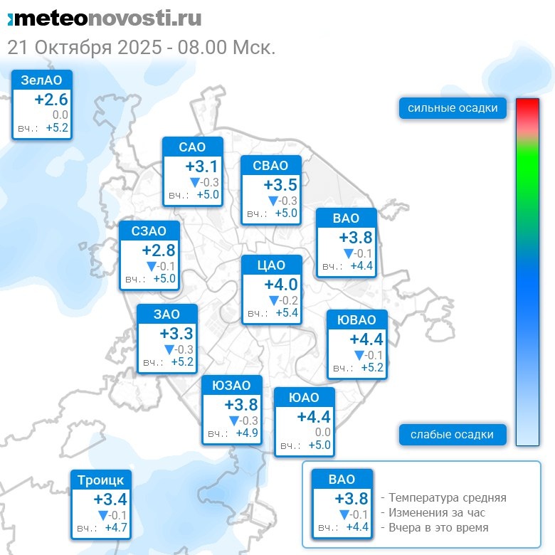 В 8:00 в Москве было от +2°C до +4.5°C, средняя температура +3.6°C #погода #Москва #осень #температура #21октября #вторник