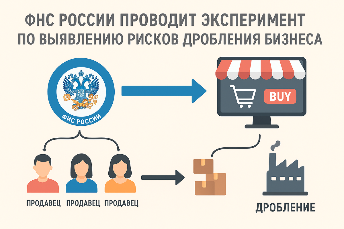 Недавно стало известно, что Федеральная налоговая служба (ФНС) проводит эксперимент по выявлению налоговых рисков среди продавцов маркетплейсов, включая один из самых опасных — «дробление бизнеса». Разберёмся простыми словами, что это значит, кого касается и как предпринимателям избежать неприятностей.