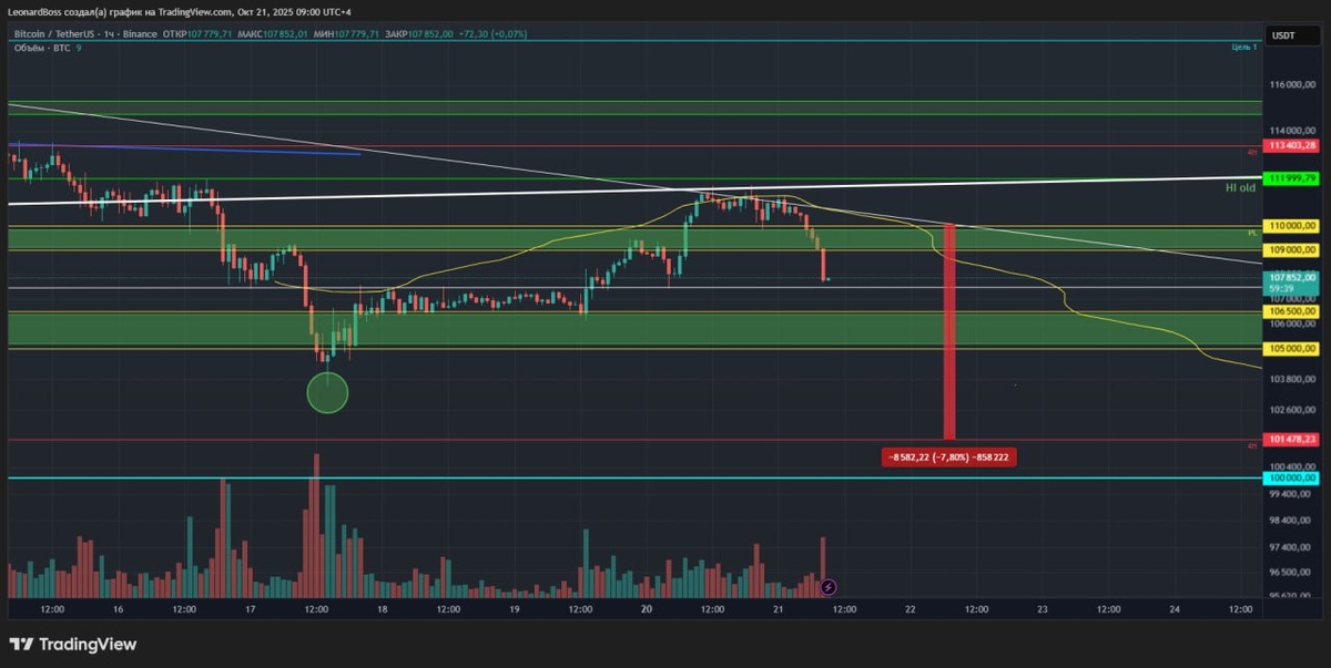 В ответ на пост #мнениепорынку 🕯🕯🕯 ⚠️По BTC даже умничать не приходится, поскольку обозначенные зоны отрабатывают, если не идеально, то очень хорошо. Зона сопротивления трендовая + Old HI = тому показатель!! ⚠️Ниже известный нам блок с нижний уровнем 105К, где я ожидаю реакцию с обратным импульсом к трендовой и блоку с уровнем 110К. Если же ближайший блок не удержит = едем к уровню 100К!! P.s. в среднесрочном снижении, данная реакция на обозначенные сопротивления = это начало пути снижения в сторону 93К, надеюсь, что вы помните мой недавний разбор? При этом, в глобальной картинке, актив продолжает находиться в процессе консолидации над психологическим уровнем 100К и очередное снижение в его сторону, можно рассматривать лишь, как очередной ретест, перед дальнейшим глобальным ростом!! Таким образом еще раз: пока цена выше 100К = вниз не смотрим!! Я это говорю в тому, друзья, чтобы вы не расслабляли все необходимые места, которые должны быть в тонусе. Пару моих коллег, в крайней б