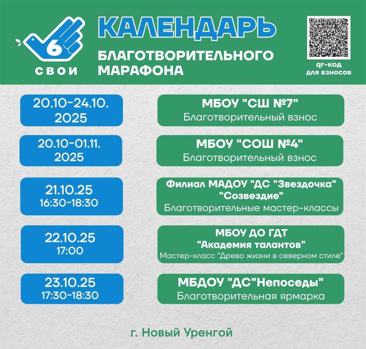 💚 Программа мероприятий Благотворительного марафона «СВОИ» на эту неделю