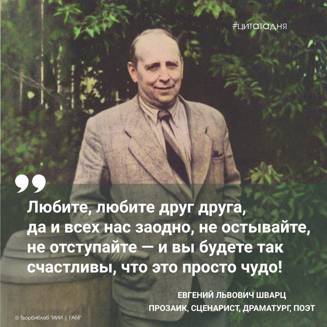 🤩 21 октября мы отмечаем день рождения замечательного русского писателя, драматурга и сценариста Евгения Львовича Шварца (1896 — 1958). Его произведения, полные волшебства, юмора и глубокого смысла, знакомы многим с детства. Шварц — это тот редкий автор, чьи сказки и пьесы не теряют своей актуальности с годами. Его произведения обращены не только к детям, но и к взрослым, заставляя их задуматься о вечных вопросах добра и зла, любви и справедливости. Книги Шварца переведены на многие языки мира и поставлены на сценах театров по всему миру. Его сказки экранизированы, а герои его пьес стали любимыми персонажами нескольких поколений. 🤩 В мире отечественной литературы у каждого из нас есть свои фавориты, и произведения Евгения Шварца наверняка там занимают особое место. Вспомните хотя бы «Обыкновенное чудо», «Сказку о потерянном времени», «Дракона», «Тень» или «Голого короля» — эти шедевры навсегда остаются в сердцах читателей. #Человек_дня #цитатадня #литература