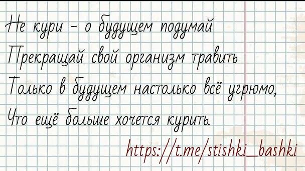 Про грядущее #курениеяд #некуримивамнесоветуем #стишкиизбашки Стишок каждый день для настроения @stishki_bashki 📹 - видеостишки тут 👈 🙊 - а тут можно комментировать 👈 Поделитесь стишком с друзьями