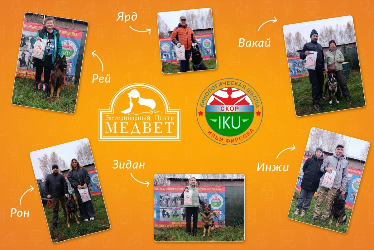 С 17 по 19 октября в Кинологической школе дрессировки Ильи Валентиновича Фирсова прошёл семинар по защите 🐾💪. Медвет Домодедово вместе с компанией Валта вручили победителям памятные призы 🏆🎉. Выражаем благодарность Илье Валентиновичу и его школе за возможность быть частью этого мероприятия 🙌😊. Победители на фото 📸✨!