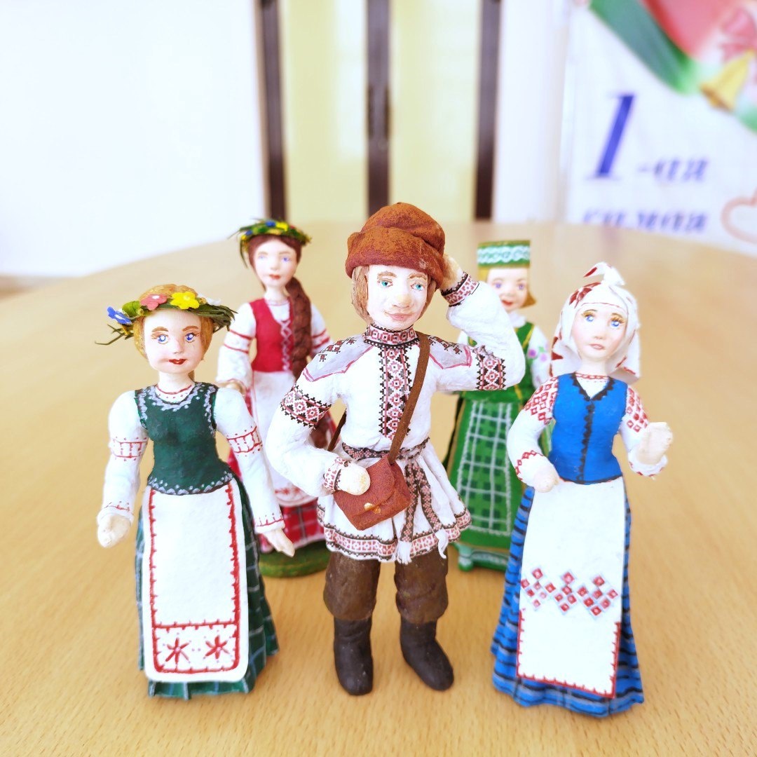 Девочка с работы учится расписывать лица, тренируется понемногу, а я одеваю их в национальные костюмы. Осваиваем совместное производство, за год глядишь и научится делать самостоятельно куколок. Обучаю понемногу.