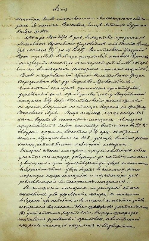 Александр Блок Ночь, улица, фонарь, аптека, Бессмысленный и тусклый свет. Живи еще хоть четверть века — Все будет так. Исхода нет. Умрешь — начнешь опять сначала И повторится все, как встарь: Ночь, ледяная рябь канала, Аптека, улица, фонарь. 10 октября 1912 г. Документ о первой аптеке в нашей местности. Акт осмотра за № 155 вновь открывшегося аптекарского магазина в поселке Сергеевка близ станции Яхрома Северной ж.д., принадлежащего мещанину Третьякову Евгению Гавриловичу. 03.10.1914 г. Текст читается хорошо, советую. Николай Алексеев.