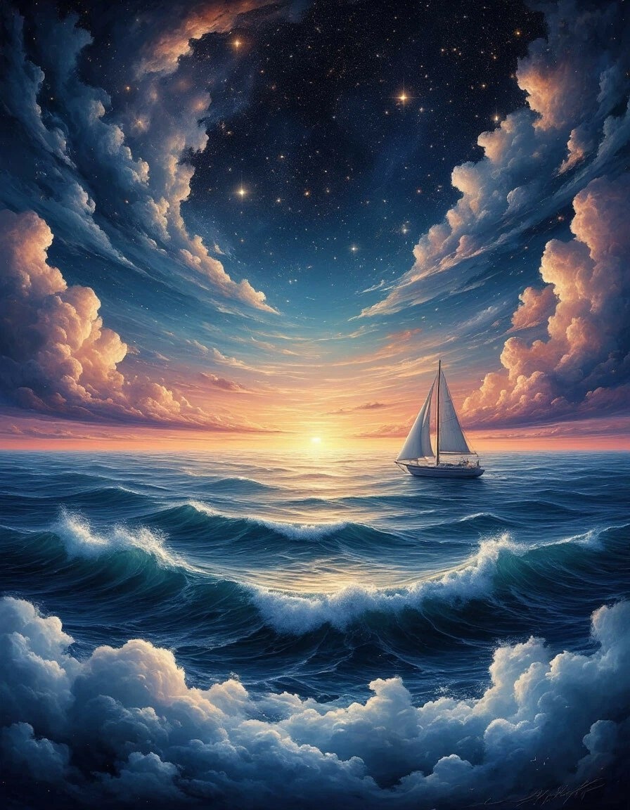 Where the sky and sea become one. An endless ocean where waves are made of clouds, and sailboats drift peacefully among the stars at dawn. This is the horizon of dreams. ______________________ Если вам удобней, то ВК здесь —-> https://vk.com/aicreativ Телеграм здесь--->https://vk.cc/cQkfRI (ВК «не любит» сторонние ссылки). #neuroart #нейроарт #ai #ии #нейросеть #картинки #искусственныйинтеллект #цифровоеискусство #digitalart #арт #art #prompt #промпт #подсказка