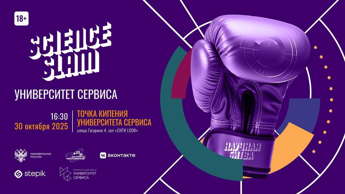 🚀30 октября в 16:30 состоится научно-популярное мероприятие Science Slam Университета сервиса в рамках Университетской лиги научных битв - проекта по развитию движения Science Slam в вузах России.