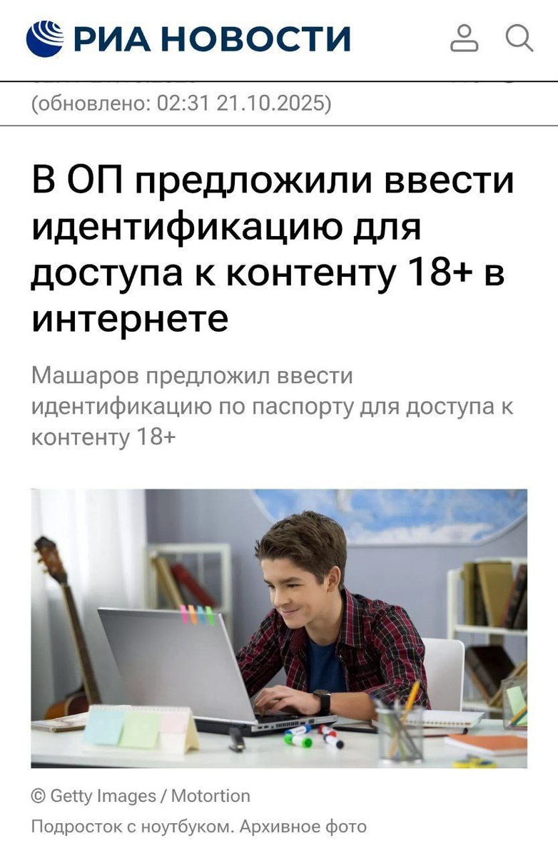 В России может появиться интернет по паспорту с такой инициативой выступила Общественная палата. Объясняем: Общественники считают, что подростки утратили культурные ориентиры из-за интернета; Чтобы эти ориентиры вернуть, надо избавить детей от токсичных блогеров, насилия и взрослых тем; Доступ к таким материалам хотят давать после подтверждения возраста 18+ через паспорт, права или банк; Меры предлагают вводить уже сейчас, пока интернет не добрался до всех детей; Если идею поддержат, пользователей заставят предоставлять паспорт, прямо как в Великобритании. Готовимся. CtrlAltDelights- подписаться