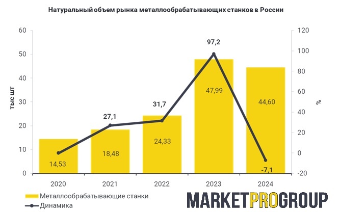 Согласно данным исследования «Анализ рынка металлообрабатывающих станков в России в 2025 году» компании MarketProGroup, столь существенный рост рынка металлообрабатывающих станков в предыдущие годы стал следствием нескольких факторов. Прежде всего, это высокое санкционное давление на Россию и приостановка импорта высокотехнологичных станков из стран Запада. Помимо запрета на поставки станков, иностранные производители приостановили техническое обслуживание приобретенного ранее оборудования. В результате этого многие российские предприятия столкнулись с износом и невозможностью обслуживать собственное оборудование, а также нехваткой запчастей и комплектующих. Это вынудило российский бизнес приобретать новое оборудование у отечественных станкостроительных предприятий, или заказывать аналоги в дружественных странах, не прекративших сотрудничество с Россией, прежде всего – в Китае.