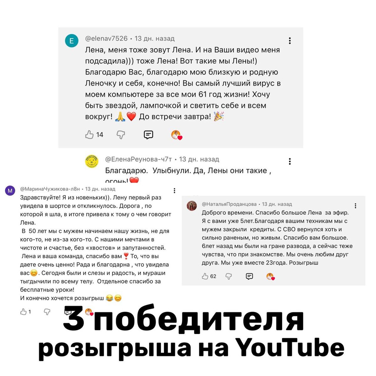 🌹🌹🌹🌹🌹🌹 🌹🌹🌹🌹🌹🌹🌹🌹 Дорогие, как и обещали, мы выбрали победителей за все три розыгрыша во время практикума ❤️ Очень надеемся, что вы успели его посмотреть, ведь доступ мы закроем уже в эту среду. Навигатор по практикуму «Мудрость, открывающая все двери мира» со ссылками на все эфиры и задания: 🌹https://dzen.ru/media/perexodvtak/praktikum-68d246d4bf292e386f38b981 Итак первые наши победители⬇️ 📱3 комментария под первым эфиром практикума на YouTube, которые были выбраны рандомно. Победители получают книгу «Переход в ТАК» Елены Реуновой в печатной версии. 🖇@elenav7526 🖇@МаринаЧужикова-л8н 🖇@НатальяПроданцова Чтобы забрать свои подарки, пишите админчикам в службу заботы 👇 @Perexod_admin Доставка по России за наш счет, доставку заграницу оплачивает получатель