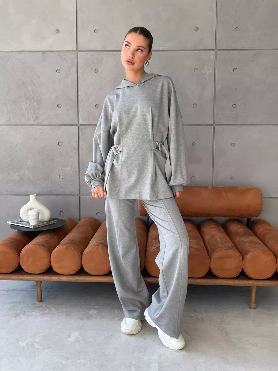 Спортивный костюм для тех, кто устал от оверсайза и одинаковых костюмов у всех. Этот худи еще будет прекрасен с юбкой карандашом классической, просто брюками и джинсами.