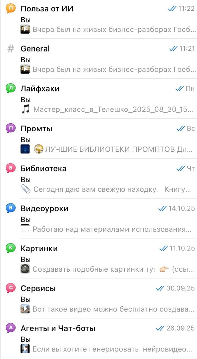 📌 Если вы не любите онлайн-курсы НО ЛЮБИТЕ Базы и подборки промтов Ссылки на полезные сервисы Видео, показывающие на вашем или чужом примере, как работать с нейросетями Лайфхаки по нейросетям Библиотеку полезной литературы (PDF) Картинки и промты, как их создавать Чат-боты, агенты, созданные для кого-то или прямо для вас, то.... То вам может понравится мой закрытый Телеграм-чат (да-да это именно ЧАТ, там можно спрашивать напрямую меня, призывать к ответу!). Что уже там точно есть: 💳 Оплата западных сервисов из РФ 📊 Инфографика для бизнеса ✨ Нейросети отвечают 🎬 Весенне-летний тренд в картинках 🖼 Генерации визуального искусства ⚡ Много ChatGPT 🧑🤝🧑 Ниши для стартапа 🔍 Анализ конкурентов 🕰️ Выжимка из длинных видеороликов 🗃️ Оформление аудиторских отчетов 😺 Развлекаем детей 🎥 Уроки правильного промтинга 🦸 Промты Гребенюка 🛍️ Виртуальные примерочные 📈 Система KPI 🏠 Генерации интерьеров 🎯 Видео для HR 💬 Бот месяца Для доступа можете подписаться на закрытый ч