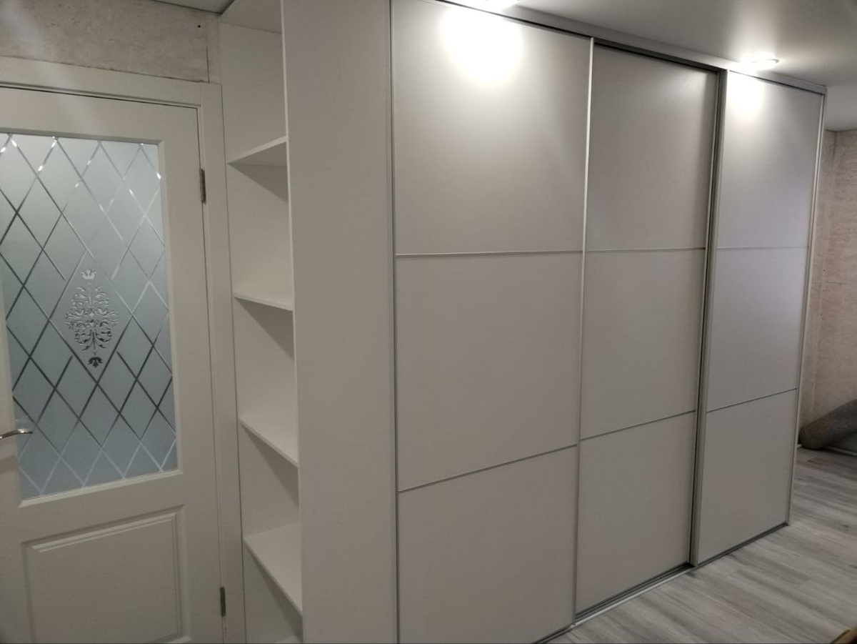 Белый шкаф купе. Встроенный. Три глухие двери. Алюминий профиль.