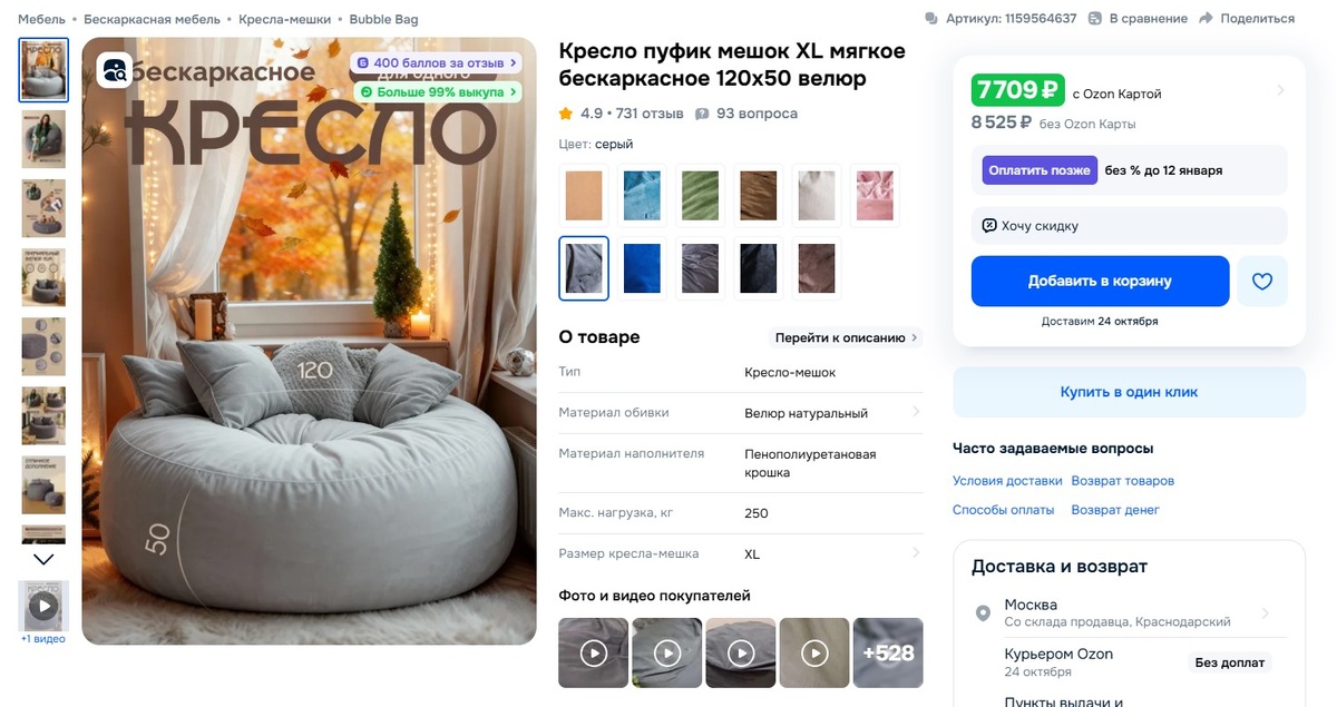 💬 Важно: я ничего не навязываю, просто делюсь личным опытом. Эта подборка - для вдохновения и хорошего настроения. Осень уже стучится в окно, а вместе с ней приходит желание сделать свой дом по-настоящему уютным. Я, как человек, который любит обустраивать пространство, решила пройтись по Ozon и собрать вещи, которые буквально перевернули представление о комфорте. Давайте вместе посмотрим, что оказалось моими фаворитами этой осени. Когда я впервые увидела этот кресло-мешок, подумала: «Вот бы в него упасть после трудного дня!» И знаете что? Оно оправдало все ожидания. Мягкий велюр, высококачественный наполнитель, который принимает форму твоего тела… Садишься и сразу понимаешь, что все проблемы дня на время исчезают. А ещё оно прекрасно вписывается в детскую, ведь детям тоже нравится зарыться в такой «облачной» мягкости. Бескаркасная конструкция - это свобода: можно перемещать кресло по комнате или брать на дачу, и оно вмиг принимает форму. Артикул: 1159564637 На первый взгляд, кажется,