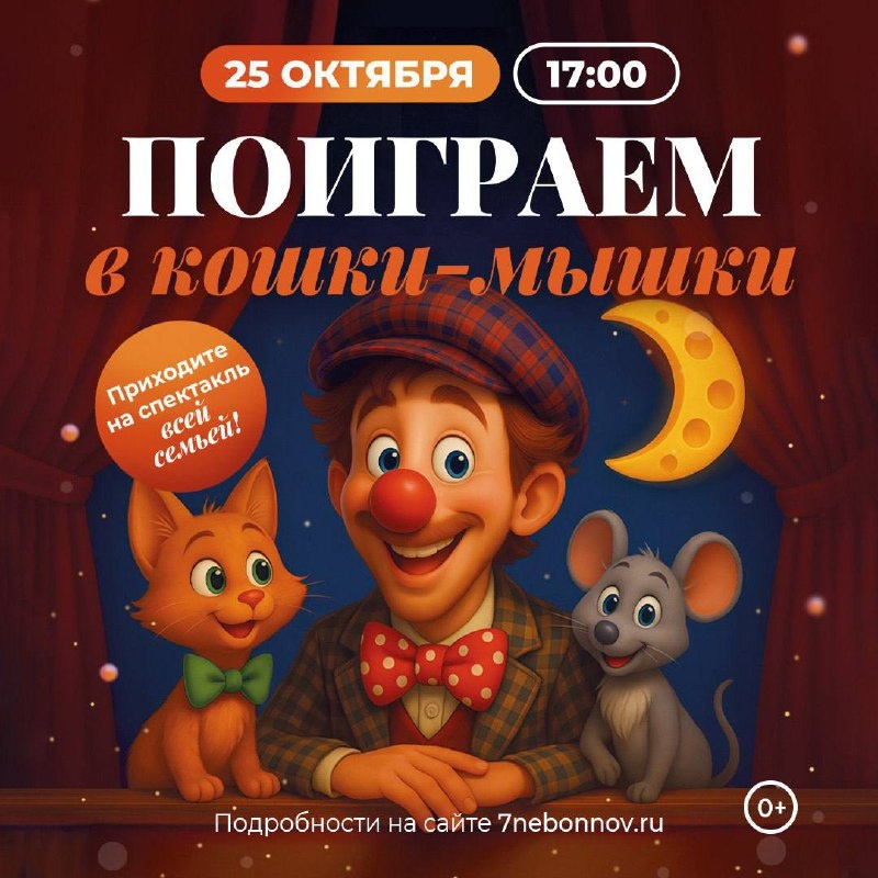 Спектакль «Поиграем в кошки-мышки» Удивительное шоу с превращениями, фокусами и мыльными пузырями перенесёт зрителей в мир, где Дядюшка Клоун боится маленького Мышонка. 25 октября в 17:00 Вход свободный ТРЦ «Седьмое небо» 😄 Мероприятия Нижний Новгород. Я местный! 📱 Telegram | 📱 MAX