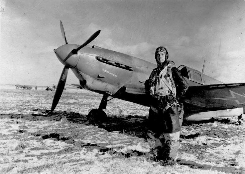 Герой Советского Союза,лётчик из состава 249-го истребительного авиационного полка старший лейтенант Кулагин Андрей Михайлович (1921-1980) на фоне истребителя ЛаГГ-3 66-й серии. 1944 год. На пределе🔥