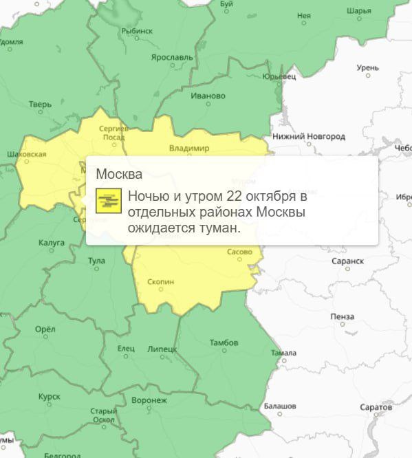 ‼️В Москве и Подмосковье на вечер 21 октября объявили жёлтый уровень опасности из-за тумана. Об этом сообщили в Гидрометцентре.