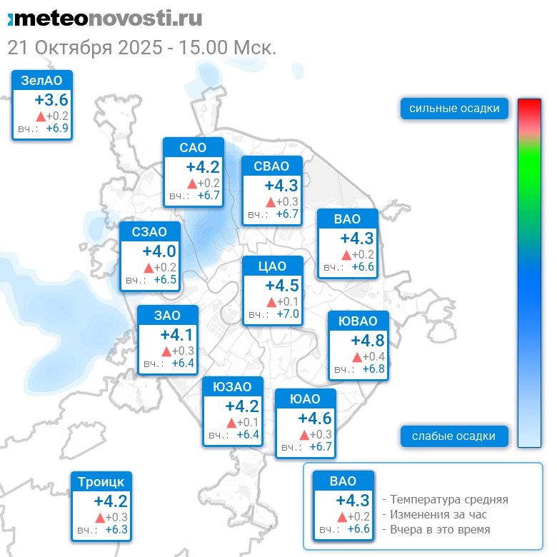 В 15:00 в Москве было от +3.4°C до +4.9°C, средняя температура +4.3°C #погода #Москва #осень #температура #21октября #вторник Перейти на сайт Прогноз погоды на 14 дней