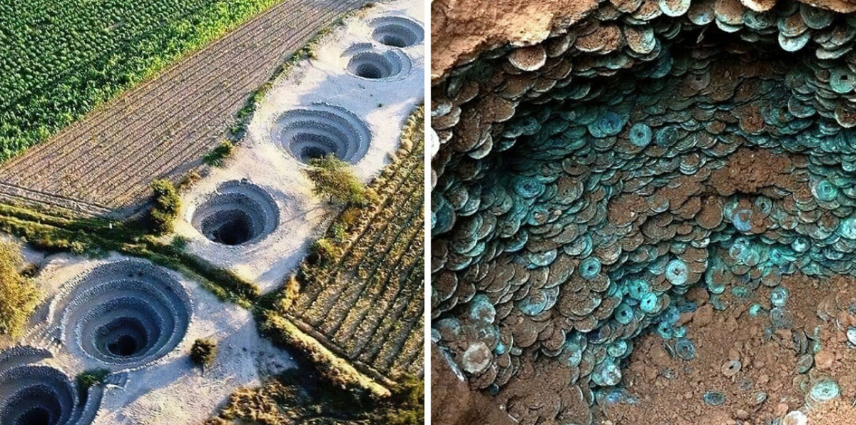 18. В месте захоронения китайской гробницы, датируемой династией Тан, (618—920 гг. н. э.), были найдены медные монеты