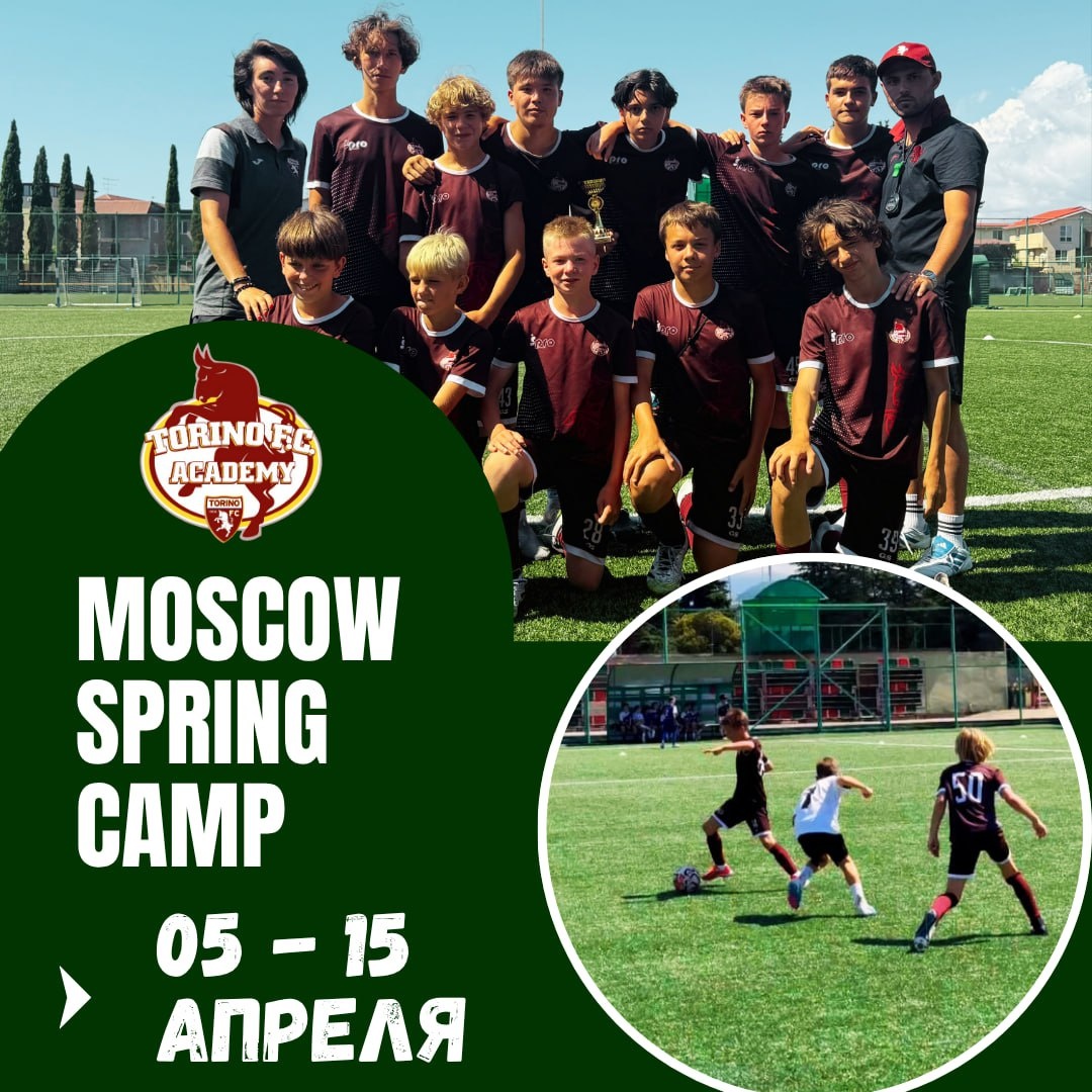 📢 Старт продаж! Весенние футбольные сборы Академии «Торино» в Подмосковье 💎 Весна — время ускоряться и показывать лучший результат! Поможем вашему ребёнку выйти на пик формы. ⚽️ По вашим многочисленным просьбам мы вывозим нашу итальянскую методику и тренерский состав в Подмосковье — и открываем раннее бронирование на весну 2026! 10 дней, которые изменят его игру! Интенсивные тренировки дважды в день, работа над ошибками и тактические занятия — формат, созданный для реальной прокачки. Что мы подготовили для футбольного рывка вашего ребенка с 5 по 15 апреля? 🤩 Профессиональный тренерский штаб из системы «Торино». Тренировки проводит лично Джанлука Кабелла (Директор Академии Торино, UEFA A) и его команда. Ключевой фокус — итальянская школа: техника, тактический интеллект и скорость принятия решений. 🤩 Программа с четким фокусом на результат. Работа над точностью паса и удара, тактическая дисциплина, решение игровых ситуаций. Мы даем инструменты, которые игрок сможет применять с
