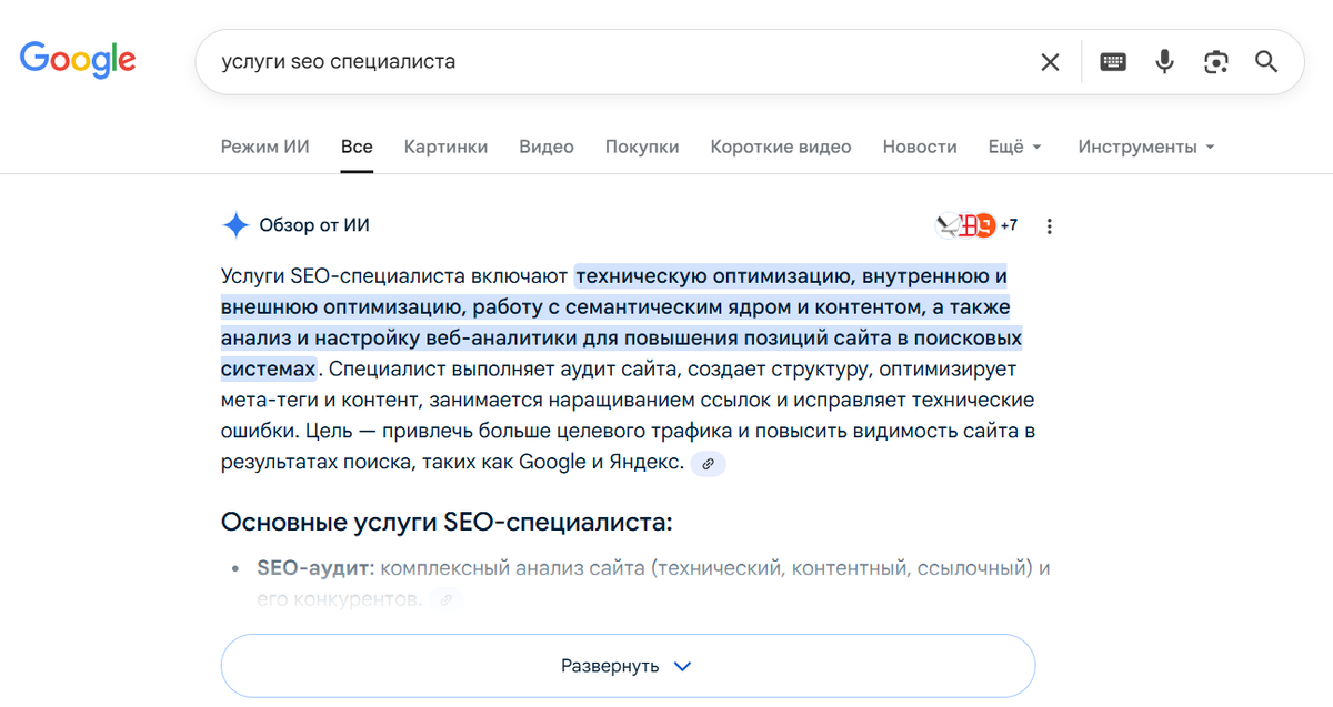 Google уничтожает классическое SEO. И это не преувеличение Рискую оказаться очередным «уличным сумасшедшим», который кричит, что SEO умрет, однако за 2025 год всё изменилось так, что если ты классический сеошник, то рекомендую всерьез задуматься о перспективах. 8 октября Google запустил AI Mode в 38 новых языках и более чем 40 странах, включая всю Европу. Теперь AI-обзоры (AI Overviews) появляются в 47% результатов поиска. И это уже не эксперимент — теперь это новая реальность. Что происходит с трафиком → 60% поисков вообще не приводят к переходу на сайт — пользователь получает ответ и уходит → Для тех, кто был на первом месте в органике, CTR упал на 34,5%, сразу после появления над ним AI-блока → Новостные сайты фиксируют рост "нулевых кликов" с 56% до 69% за год То есть ты можешь быть топ-1, можешь вкладывать бюджеты в контент, линкбилдинг и техническую оптимизацию — а трафика всё равно не будет. Потому что над тобой теперь сидит ИИ-ответ, который собрал инфу с 7-9 источник