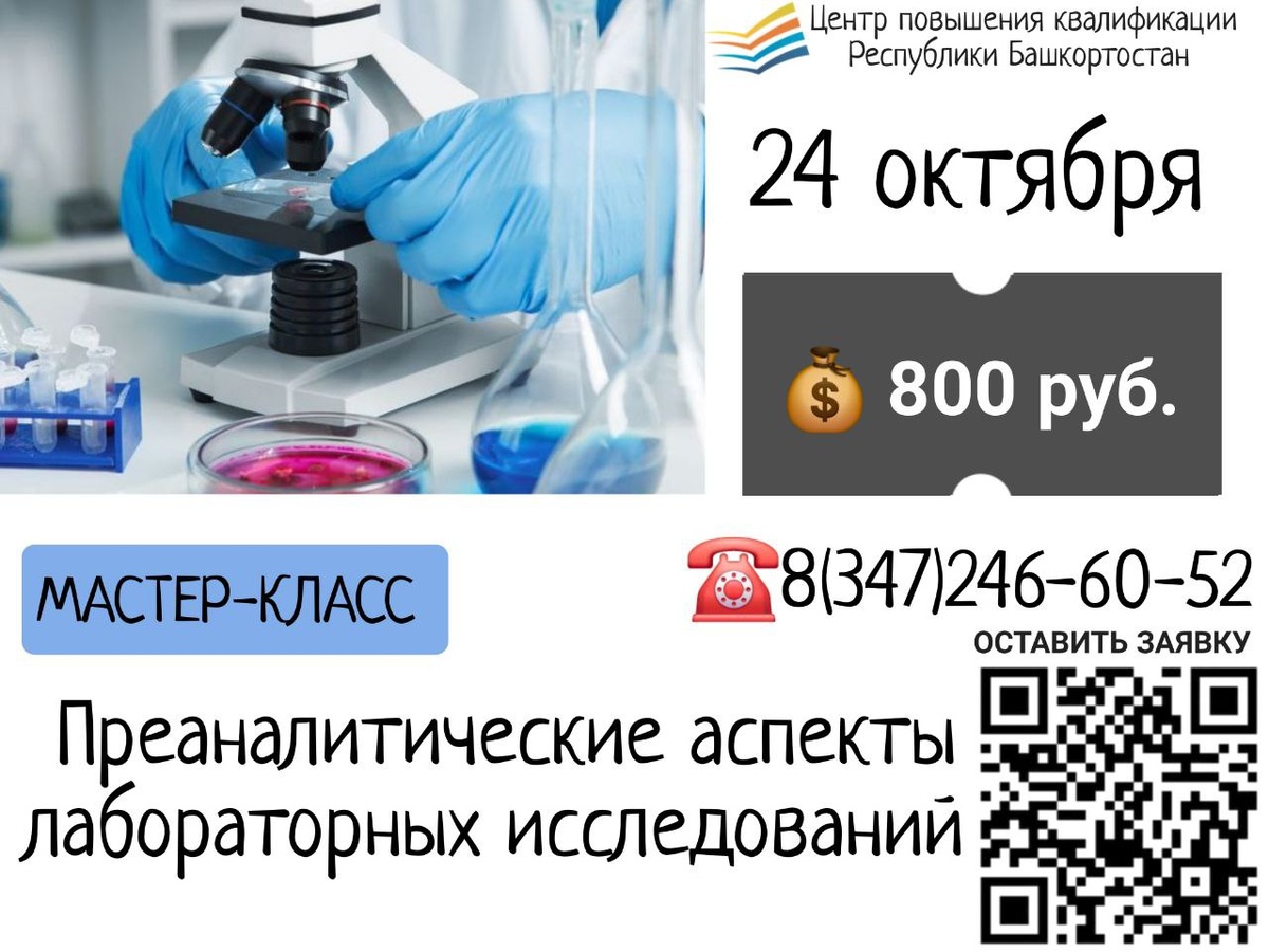 📅📚24 октября приглашаем вас на Мастер-класс «Преаналитические аспекты лабораторных исследований».