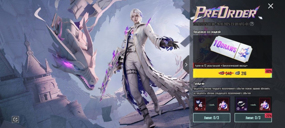 Предзаказ следующего золотого костюма В игре уже открыт предзаказ на новый золотой костюм, и выглядит он очень даже привлекательно. Помимо самого костюма, нас ждёт красивый скин на оружие, так что если хотите увеличить шансы на удачу — самое время оформить предзаказ. Не забудьте: пока ещё можно обменять старые жетоны на новые, чтобы они не пропали зря. Наш бот для пополнения UC: @OneTwoPay_bot 😎 PUBG Mobile