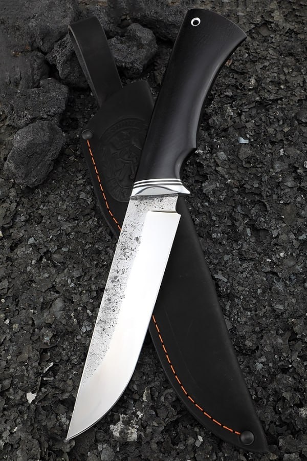 Рукоять из чёрного граба — строгая, прочная и удобная в хвате. Кожаные ножны обеспечат защиту и удобство в транспортировке.