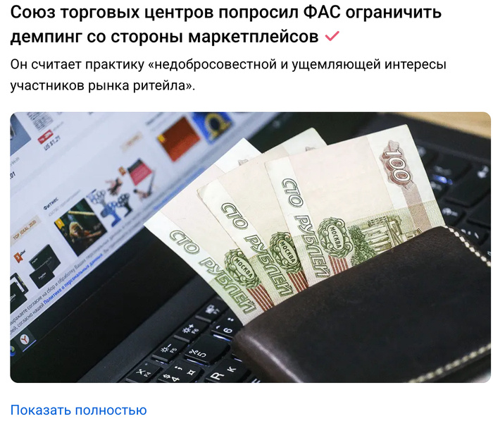 Ну что, пора брать вилы и идти спасать бедные торговые центры от страшных маркетплейсов. Народ, одумайтесь — вы слишком дешево покупаете! Это ж кощунство против священной маржи. Как теперь владельцам бутиков оплачивать аренду, если вы вместо их пыльных витрин выбираете доставку до двери? Союз торговых центров просит ФАС «ограничить демпинг». А началось все после заявления главы DNS. Перевод с чиновничьего: «Сделайте что-нибудь, чтобы людям снова было дорого». А то ведь пока в онлайне скидки по 50–70%, потребитель дерзко экономит и портит статистику выручки. В старые времена все было просто — или покупаешь у нас, или топай в соседний павильон с теми же ценами и видом усталого кассира. А теперь, ужас, каждый может сравнить стоимость в два клика. Выходит, кто-то работает эффективнее, у кого-то накрутка меньше, и вот это уже «ущемление интересов участников рынка». Конечно, ведь интерес участника — чтобы вы платили больше, а не меньше. Так что, давайте по логике Союза: закроем маркетплейсы,