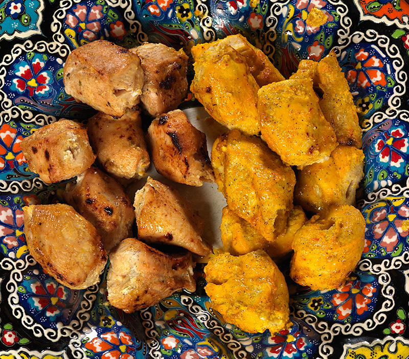 Говоря о самодельной шаурме мы уже упоминали о маринадах на кисломолочных продуктах. И речь шла о том, что без изрядного количества специй, предохраняющих маринад и сам продукт от порчи, такие маринады довольно опасны, особенно, если шашлык готовится в жаркую погоду. Поэтому будет нелишним обратиться к опыту народов, которые живут в жарком и влажном климате, умеют обращаться со специями, готовят с кисломолочными маринадами довольно часто и при этом не страдают от расстройств живота.