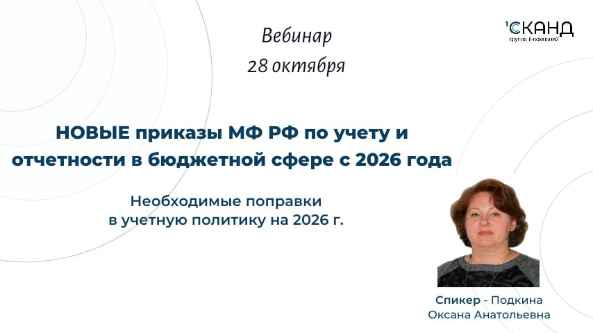 Приглашаем на вебинар Подкиной О.А. на тему «Готовимся к переходу на НОВЫЕ приказы МФ РФ по учету и отчетности в бюджетной сфере с 2026г.»