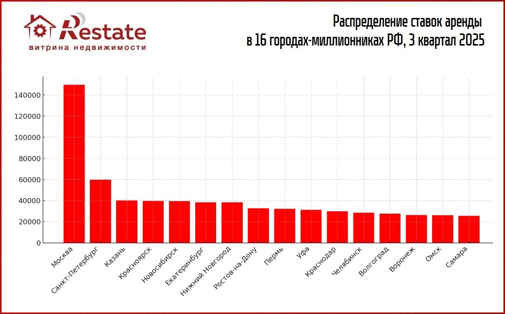 🏦 Аренда дорожает по всей России: в лидерах Москва, Уфа и Нижний Новгород Рынок аренды жилья оживился к осени: по данным «Витрины недвижимости Restate», в III квартале 2025 года ставки выросли в 15 из 16 городов-миллионников. ✔ Исключение — только Санкт-Петербург (–1,6%). Средний прирост по стране — +8,9%. ⬆ Лидеры роста: • Москва — +24,2%, средняя ставка почти 150 000 ₽/мес. • Уфа — +15,8% • Нижний Новгород — +15,0% • Новосибирск — +12,8% • Ростов-на-Дону — +12,1% ⬇ В минусе только Петербург — средняя ставка снизилась до 59,7 тыс. ₽. Самый быстрый рост сейчас на Урале и в Поволжье. Юг — больше про стагнацию. И да, если в Москве аренда ≈150 тыс., то в регионах медиана всё ещё <40 тыс. ₽. 🏦#индексы_restate #аренда