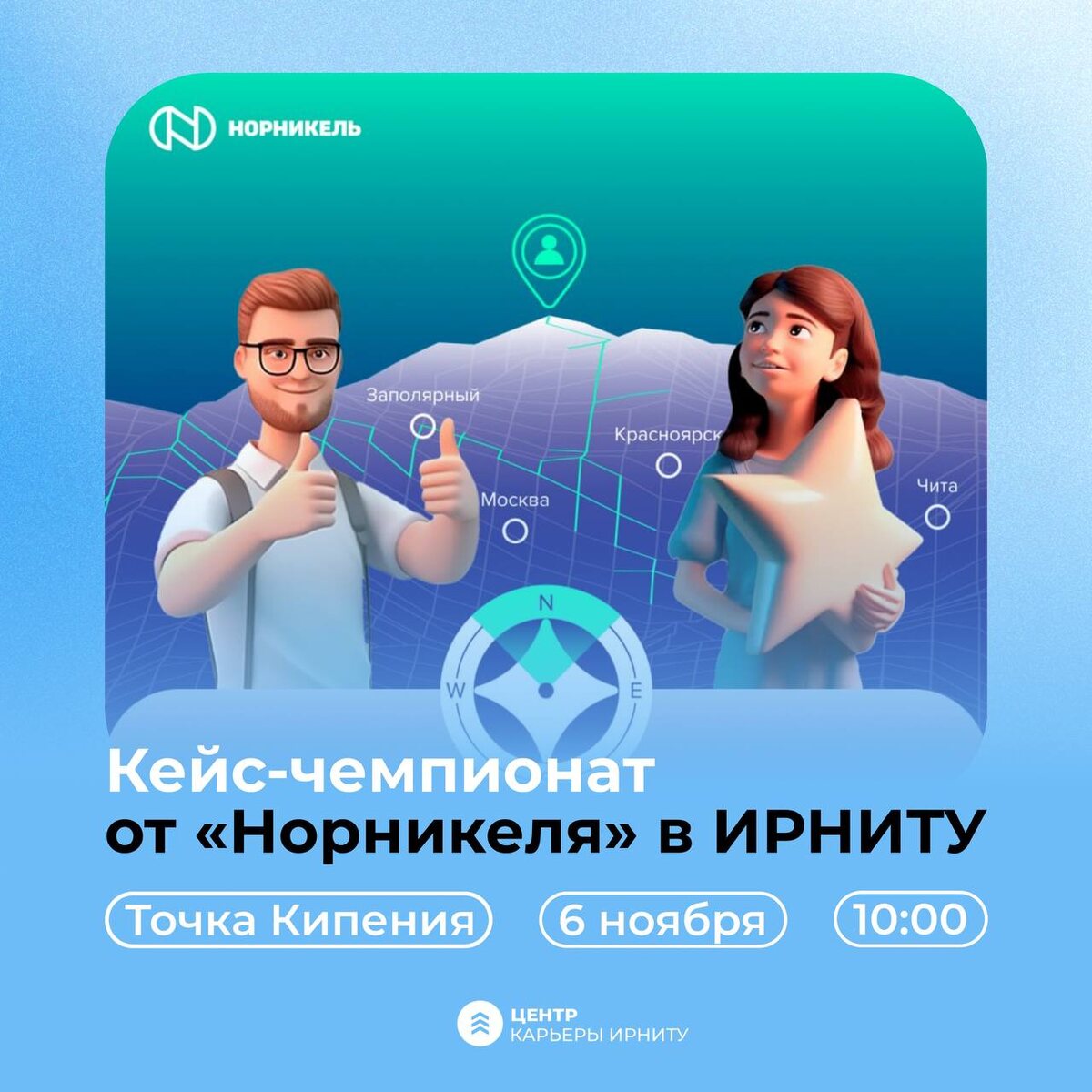 «Покорители севера» в Иркутском политехе 🎓 «Норникель» продолжает традицию и снова помогает студентам познакомиться с горно-металлургической отраслью на онлайн-курсе «Покорители Севера»! В этом году они придумали, как применить новые знания на практике 💪 🖇 В финале студентов ИРНИТУ ждет очный кейс-чемпионат — за четыре часа вы сможете решить реальный кейс, над которым работают инженеры компании. 🖇 Вам предстоит познакомиться с технологическими решениями компании для производства и создать своего робота или цифрового помощника для инженеров Севера — надёжного напарника, который сделает их работу удобнее, безопаснее и откроет новые возможности для целой отрасли. 🖇 На кейс-чемпионат приглашаются студенты инженерных специальностей – металлургия, горное дело, техносферная безопасность, автоматизация, мехатроника, машиностроение, энергетика, строительство, информационные технологии и др Победителей ждут ценные призы, фирменные сувениры, карьерные консультации и преимущество в отбор