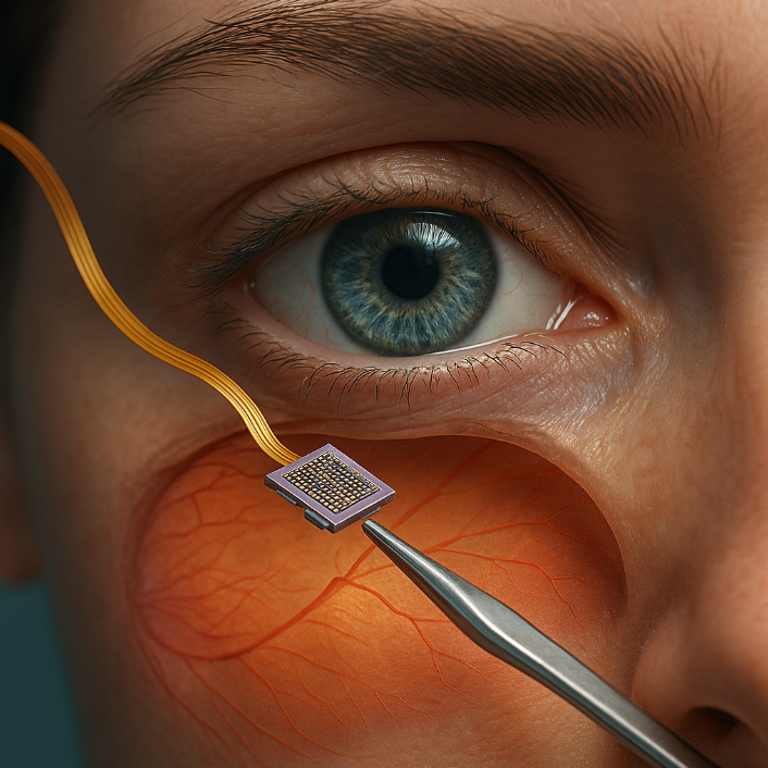 Учёные сделали шаг, который ещё недавно казался фантастикой: людям с почти полной потерей зрения вернули возможность различать буквы и фигуры. Речь идёт не о пересадке глаза или сложной нейрохирургии, а о микроскопическом импланте — тоньше человеческого волоса, установленном прямо под сетчатку. Возрастная макулярная дегенерация (AMD) — одна из самых частых причин потери зрения у пожилых людей.