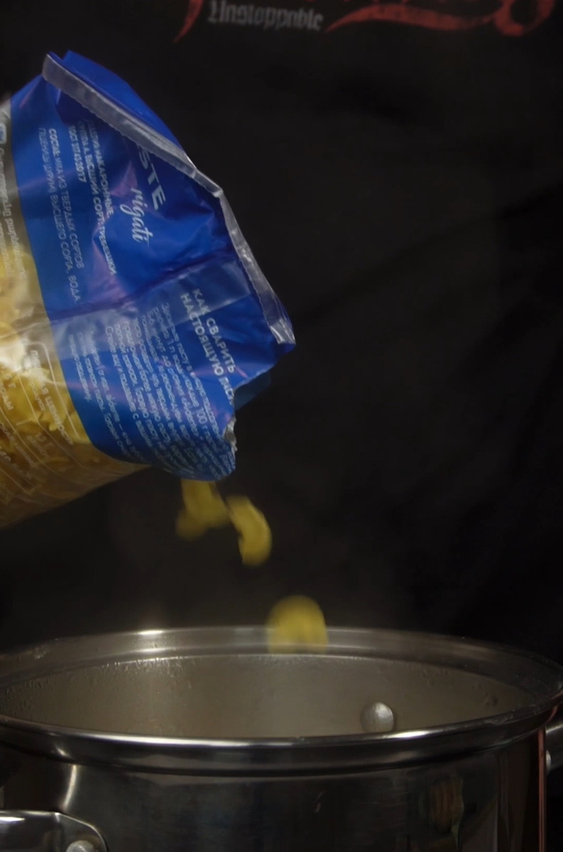 1. Сначала паста варится в подсоленной воде.