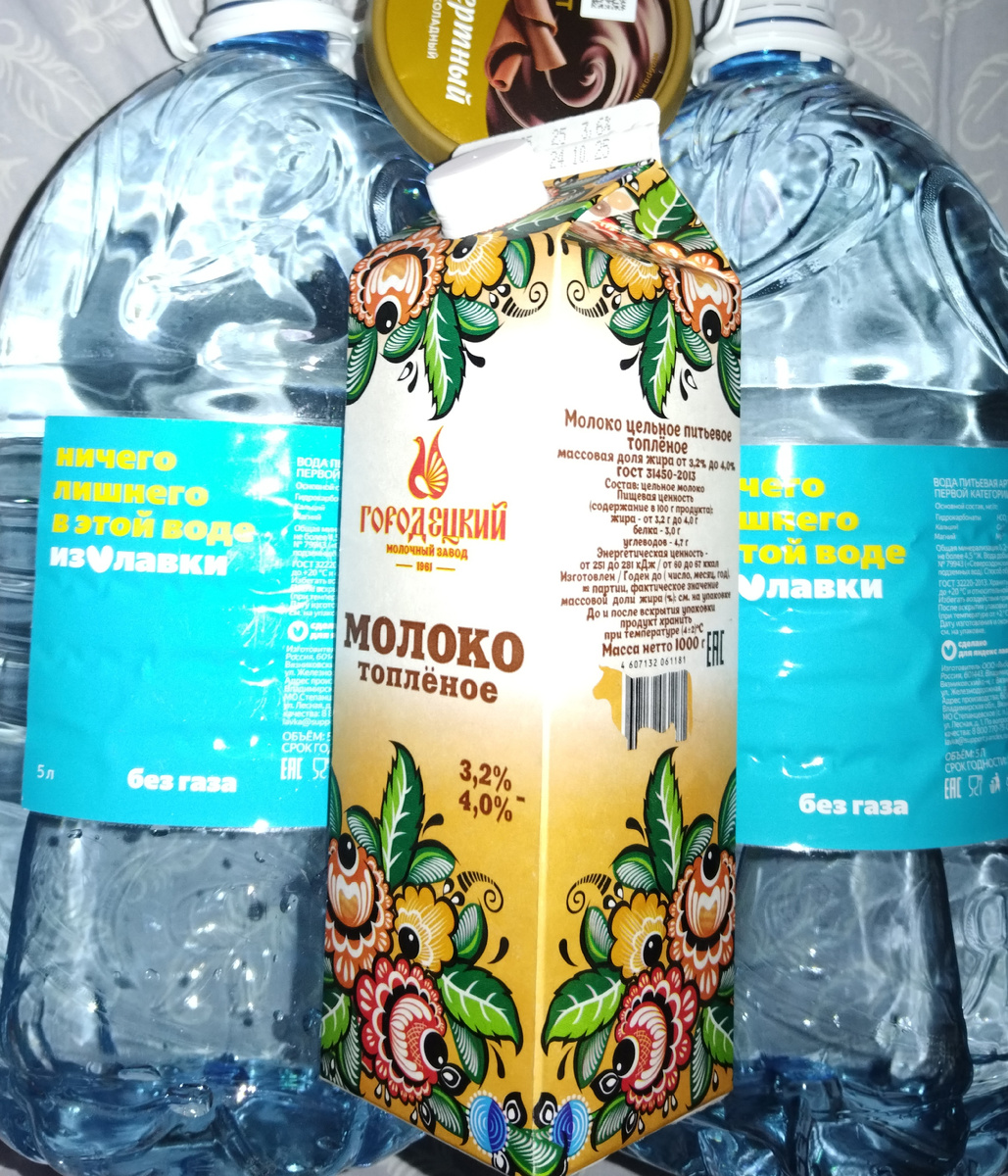 Ну заказала в лавке две баклажки воды . А еще сыр и молоко. Сыр детям на завтрак. А то Варя наша совсем скисла. Ничего не хочет. А этот сыр думаю точно будет. И молоко топленое она тоже любит.