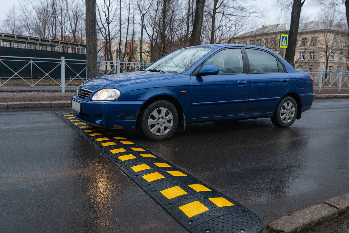 Искусственные неровности — это либо модульные полимерные секции, притянутые к полотну анкерами, либо асфальтовые насыпи. Геометрия задумана так, чтобы на малой скорости колёса «вскарабкались» на пологий склон и «скатились» без пробоев. Но ровно в тот момент, когда вы тормозите на самом ребре и пытаетесь проскочить на 20–30 км/ч, автомобиль клюёт носом, п