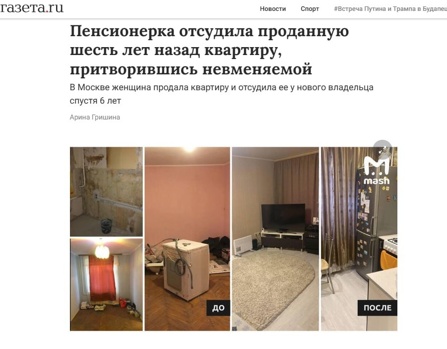 ℹ️ Необычная история из Москвы: пожилая женщина сумела через суд отсудить квартиру, которую продала ещё в 2019 году, заявив, что на момент сделки была невменяемой.