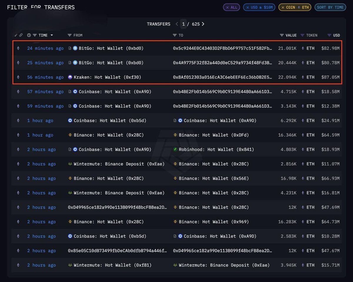 На три адреса Bitmine перевели еще 63,095 ETH ($250m) с бирж BitGo и Kraken.