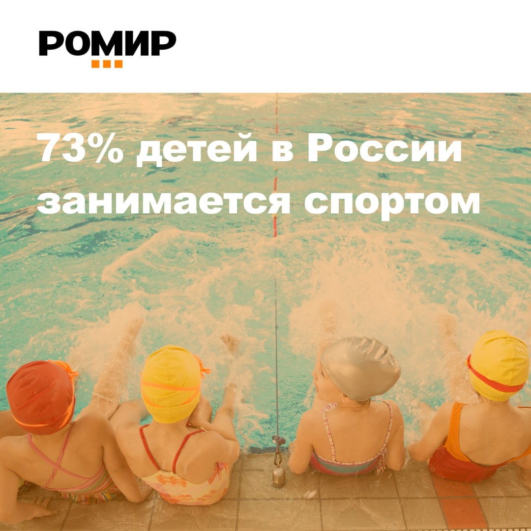 По данным РОМИР, 73% детей в России занимается спортом. 🔸 Самый высокий процент приходится на плавание – 23%, затем следуют: футбол (18%), гимнастика (11%), велоспорт (8%), волейбол и легкая атлетика (по 7%). 🔸 Больше всего занимающихся спортом детей в крупных городах с населением свыше 1 млн человек – 78%, а меньше всего в городах с населением до 100 тысяч человек (71%) и от 100 до 500 тысяч (70%). 🔸 Уровень вовлеченности детей в спорт растет при увеличении дохода семьи. Так, в семьях с низким доходом (до 20 000 р. на члена семьи в месяц) 68% детей занимаются спортом, а в семьях с высоким доходом (более 100 000 р. на человека) – 85%. 🔸 Выбираемые виды спорта отличаются по регионам. Самый популярный спорт Северо-Западного и Центрального федеральных округов – футбол. На Северном Кавказе в топе смешанные единоборства, а в Южном федеральном округе – самбо. Подробнее читайте на нашем сайте и в материале газеты «Ведомости» → #спорт #дети
