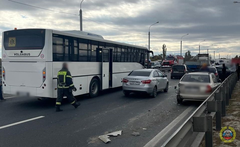 Автобус, два грузовика и семь легковушек столкнулись в Волгоградской области