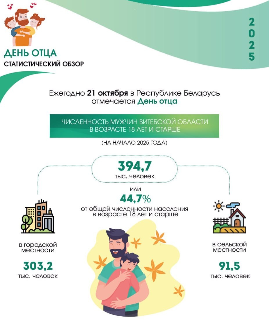 📊Главное статистическое управление Витебской области к Дню отца подготовило интересные цифры о сильной половине Витебщины