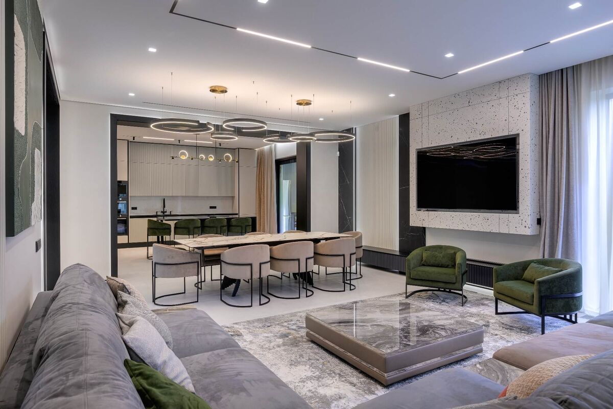 Редкий объект на рынке! Новый модный стильный дом площадью 480 кв.м на участке 19 соток всего в 14 км от МКАД по Новорижскому шоссе в глубине стародачного поселка Ольгино.