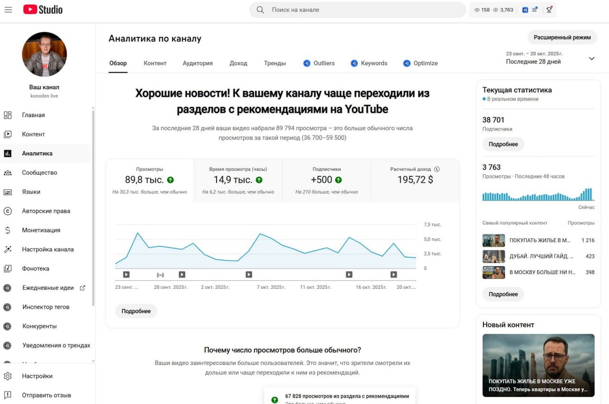 Алгоритм ожил. Канал стал дышать. Рекомендации пошли вверх, графики зеленые.