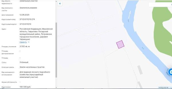 Название: Категория земель «Земли населенных пунктов»; кадастровый номер 37:03:011210:274; площадь 3000 кв.м.; вид разрешенного использования - Для ведения личного подсобного хозяйства (приусадебный земельный участок); адрес (местоположение) - Российская Федерация, Ивановская область, Гаврилово-Посадский муниципальный район, Петровское городское поселение, деревня Черницыно Канал: Госземля Ивановская область Область: обл Ивановская Район: м.р-н Гаврилово-Посадский Населенный пункт: г.п. Петровское, д Черницыно Локация: Смотреть на карте ВРИ: Для ведения личного подсобного хозяйства (приусадебный земельный участок) Кадастровый номер: 37:03:011210:274 Кадастровая стоимость: 190590.00 Вид сделки: Аренда Площадь: 3000 м² Начальная цена: - руб. Дата завершения: 20.11.2025 Подробнее: ГИС ТОРГИ #госземля #земляотгосударства #земля #земельныйучасток #земельныеторги #торги #аукцион #арендаземли #аренда #ивановскаяобласть