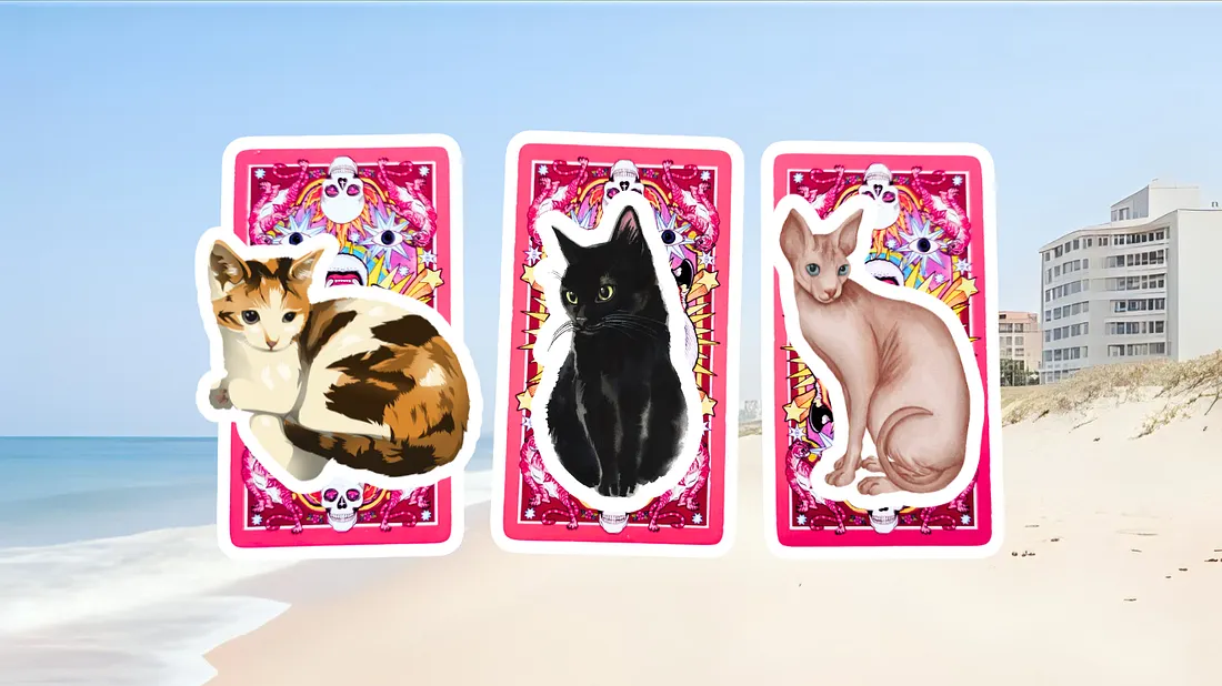 Сделайте глубокий вдох. Сделайте выдох длиннее вдоха и посмотрите или внутренним слухом «услышите» три варианта карт. Под номером один — Черепаховая кошка. Под номером два — Чёрная кошка. И под номером три — Кошка сфинкс. Пусть дыхание задаст ритм, а внимание — направление: выбор рождается там, где тишина становится ясностью.