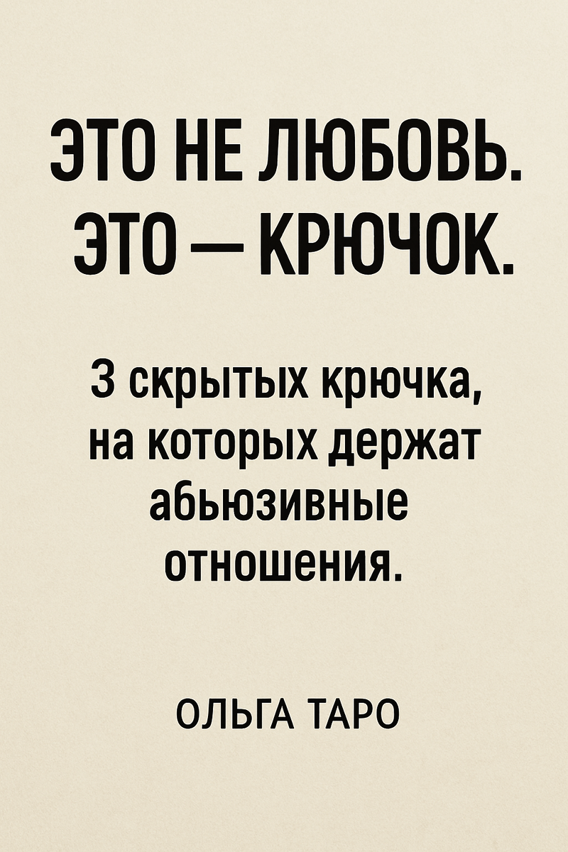 Мы часто думаем, что не можем отпустить конкретного человека. Но правда в том, что чаще всего мы не можем отпустить роль, надежду и иллюзию. Не мужчину. Есть 3 крючка, которые удерживают людей в абьюзивных, разрушительных отношениях. И пока человек не увидит их — он будет возвращаться, оправдывать, терпеть и «страдать о великой любви». Абьюзер бьёт туда первым.