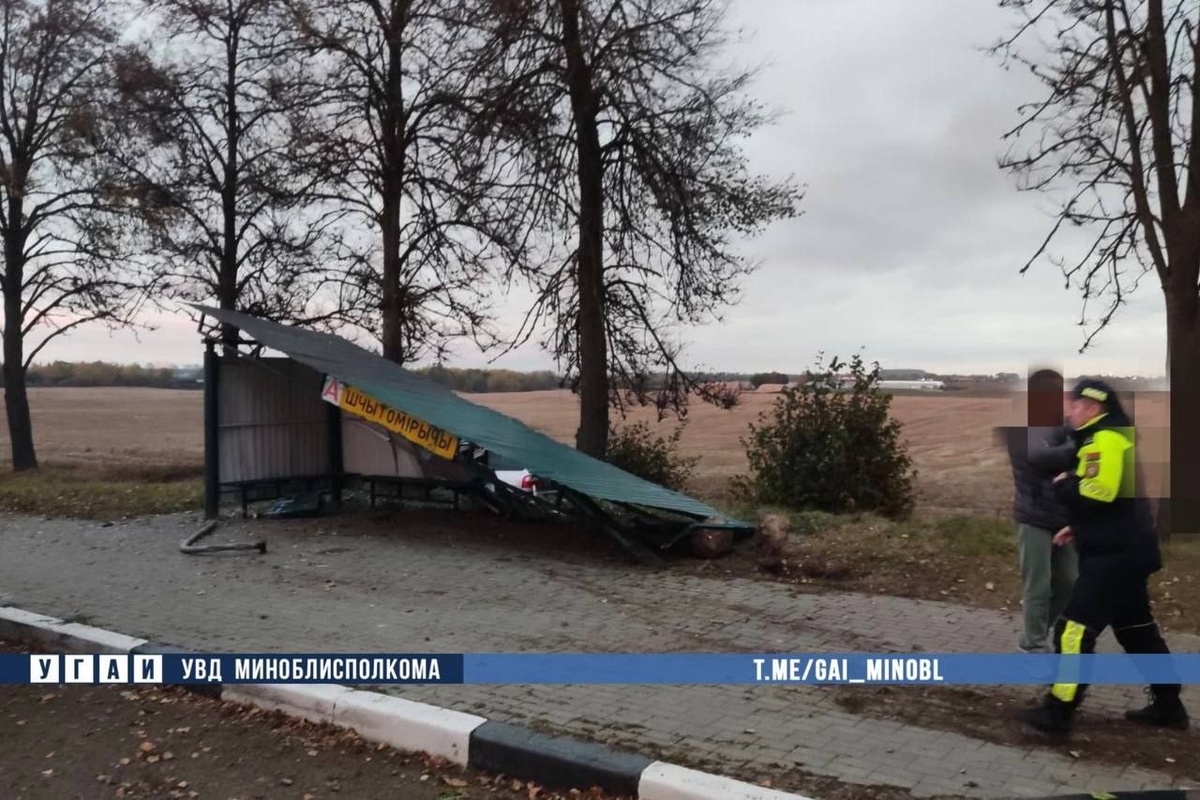Снёс остановку и вылетел в кювет: ДТП Ford Galaxy под Минском