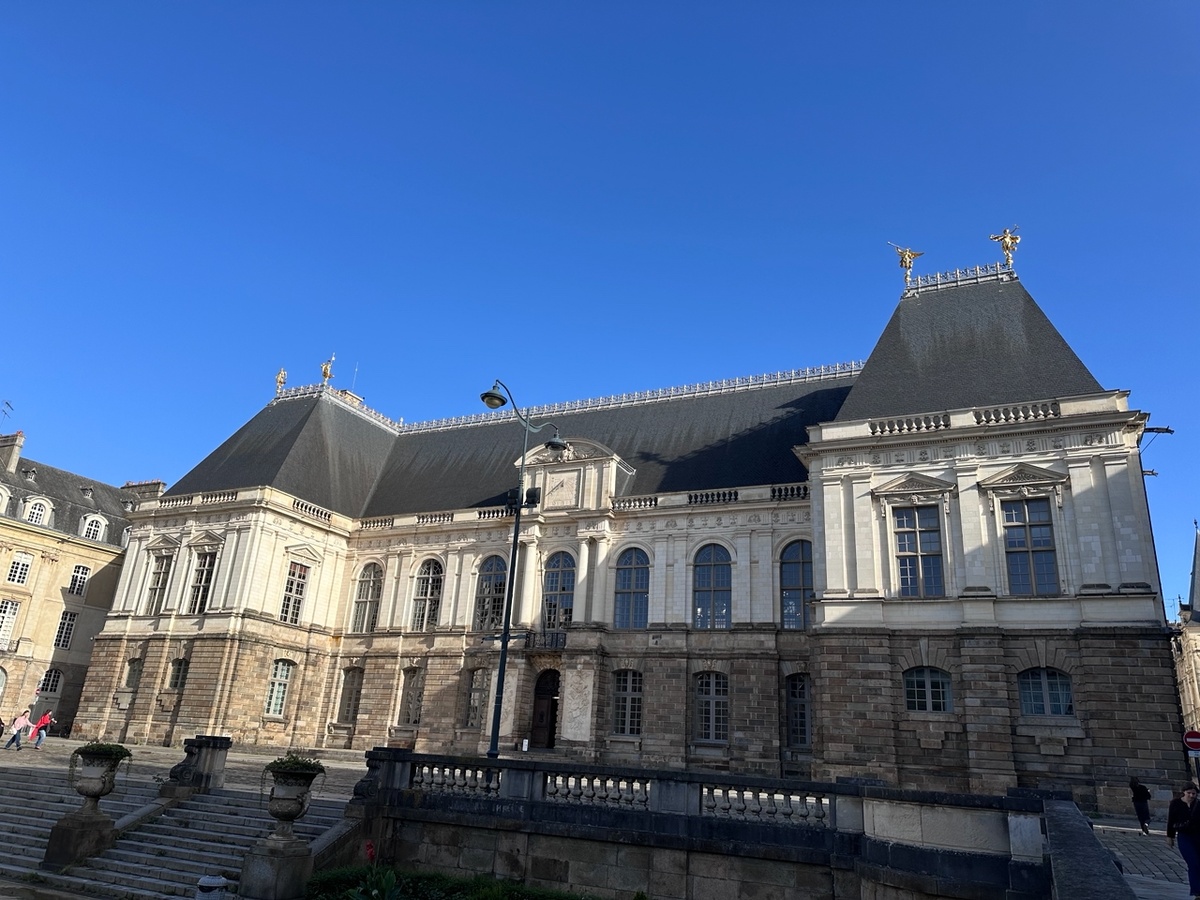 На знакомство с Ренном я заложила полдня - по дороге в Мон-Сен-Мишель, и этого нам, если честно, хватило. Если сравнивать даже с Руаном, в котором мы были накануне такое же время - как небо и земля, тут ощущения и у меня и у мужа совпали. По времени мы в обоих городах были примерно одинаково, но в Руане хотелось гулять еще и еще, а в Ренне мы ждали времени отправления автобуса дальше. Ренн по документам город очень старый, но внешне - не очень: в 1720 году город был уничтожен пожаром, и сохранилось только каменное здание Дворца парламента Бретани - сейчас это символ города. Остальной город был отстроен заново полностью. В путеводителях про Ренн пишут, что он "восхищает разнообразием эпох" - во время прогулки можно плавно переходить из одной эпохи в другую без резких отрезков. Если честно, я особых различий не заметила, для меня (да простят меня любители и знатоки Ренна) этот город остался безликим. Да, хоть и есть в городе (по официальным данным) 280 фахверковых домов, но с ними всё